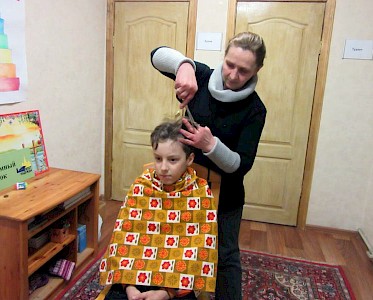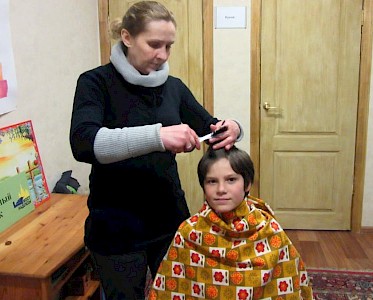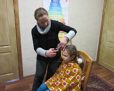„Frau Galagowetz, ich habe von ihrem wunderbaren Haus gehört, in dem ihre Hilfsorganisation Straßenkinder betreut. Wir haben ein Problem in unserer Schule. Die meisten Kinder kommen aus ganz armen Familien, die kein Geld haben, ihre Kinder zu einem Frisör zu schicken. Können sie uns helfen?“