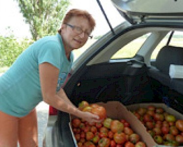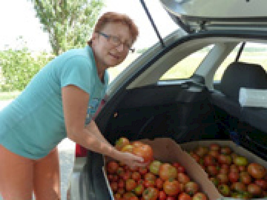 Wochenlang hielt eine Hitzeperiode mit Temperaturen von weit über 30 Grad Swetlowodsk und seine Umgebung im festen Griff. Besonders in den „Vergessenen Dörfern“ schleppten die Menschen jeden Tag Wasser in ihre Gärten, um die nächste Ernte zu retten. Doch dann rast in einer Nacht ein Unwetter über einige Dörfer, das einen großen Teil der Ernte vernichtete. Hagelkörner in Größe von Hühnereiern zerschlugen viele Pflanzen. Die Enttäuschung war groß. Wir haben den armen Familien die wir betreuen sofort unsere Hilfe zugesagt. Es war aber besonders ermutigend, dass Familien aus anderen Dörfern, denen es selbst nicht gut geht, viele Eimer mit Obst und Gemüse abgaben, die wir bereits in den betroffenen Familien verteilt haben, um sie zu ermutigen.