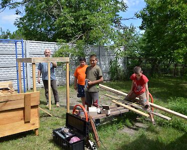 Vor kurzem haben sie ein großes Projekt abgeschlossen. Sie bauten zusammen einen Sandkasten für den Spielplatz. Das war eine Menge Arbeit! Der Sandkasten musste geplant, der Bedarf an Holzlatten berechnet und die Latten dann anschließend richtig zusammengeschraubt werden. Dieses Projekt hat unsere Jungs zusammengeschweißt und machte sie richtig stolz!