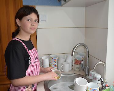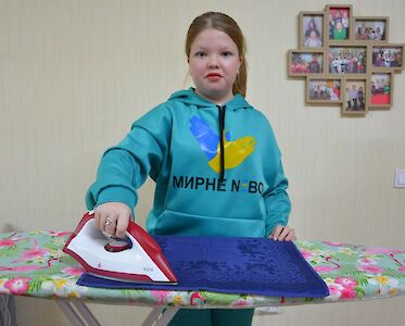 Unsere Kinder im Zufluchtsort in Odariwka freuen sich, wenn sie etwas Neues lernen können. Es macht den Mädchen großen Spaß, wenn sie ihre Kleidung selbst bügeln und dann gelobt werden, weil sie es gut gemacht haben. Ihr Aussehen ist ihnen wichtig.
