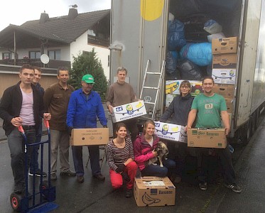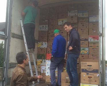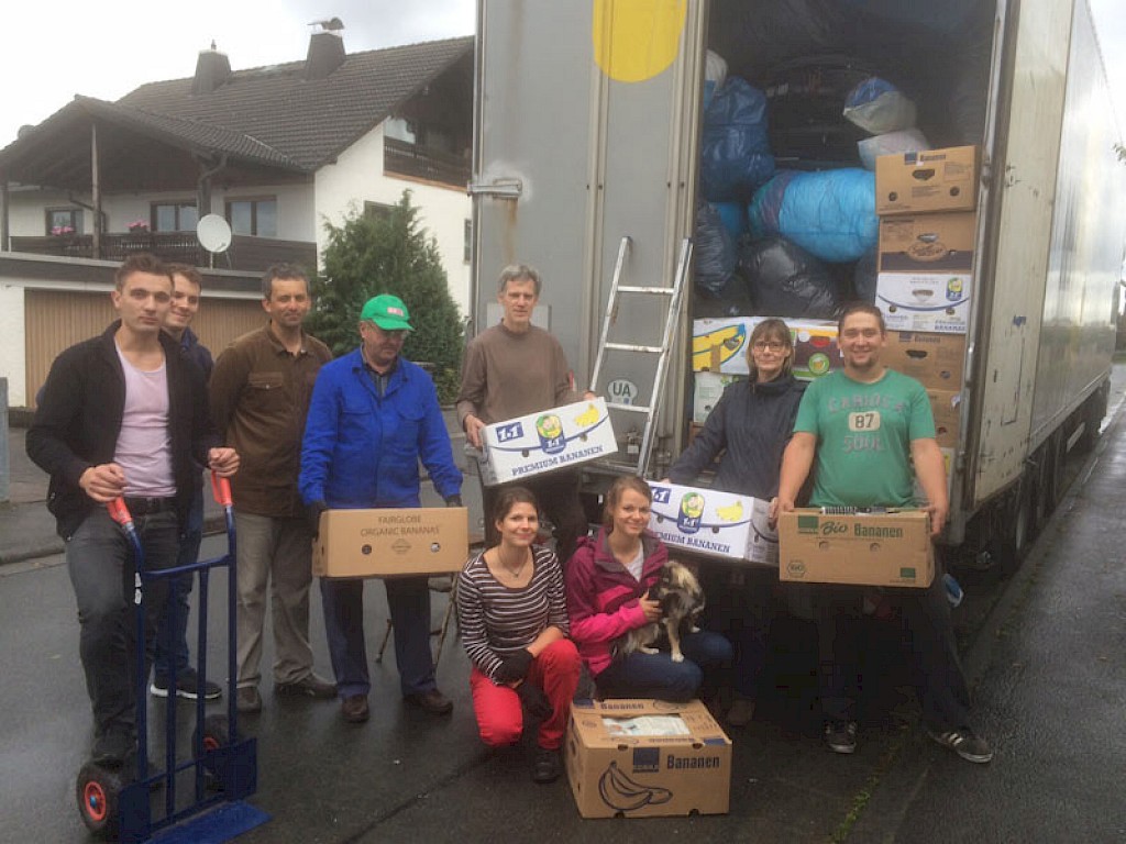 Wenn unser großer Lastwagen nach Deutschland kommt, dann müssen fast 100 Kubikmeter mit Hilfsgütern geladen werden, Möbel, Fahrräder, Bananenkartons. Da sind wir natürlich froh, wenn viele Helfer kommen.