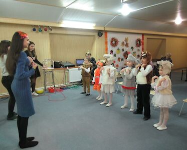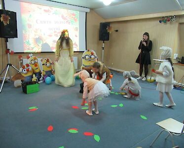 Auf dem Programm standen Gedichte, Tänze und Lieder. Jeder durfte im großen Saal unserer "Villa Sonnenschein" stehen, um etwas vorzutragen. Nun haben wir beschlossen in diesem Monat ihre Eltern einzuladen, um ihnen unser Programm vorzuführen.