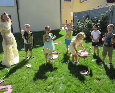 Darina hatte ein Anspiel vorbereitet. Sie war eine Prinzessin, die neugierig war, die immer wieder etwas Neues lernen wollte. Unsere Kinder müssen verstehen, dass wir sie nicht nur unterhalten, wir wollen ihnen etwas beibringen, wollen sie auf die Schule vorbereiten.