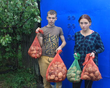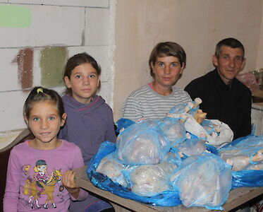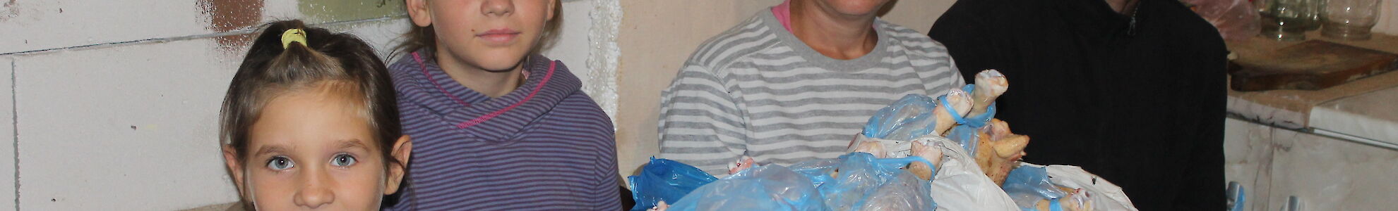 „Wir sind so dankbar, dass Sie uns im Frühjahr und Sommer geholfen haben, Hühner und Schweine zu kaufen. Jetzt haben wir sie geschlachtet und können das Fleisch, das wir nicht selbst benötigen, verkaufen“. „Vielen Dank für die warme Kleidung für unsere vier Töchter. Ihre Hilfe kam genau zum richtigen Zeitpunkt.“ „Danke für das Schweißgerät für meinen Sohn. Dima hat schon einen Zaun repariert und ein Tor geschweißt. Er möchte gerne Schweißer werden.“