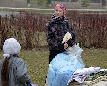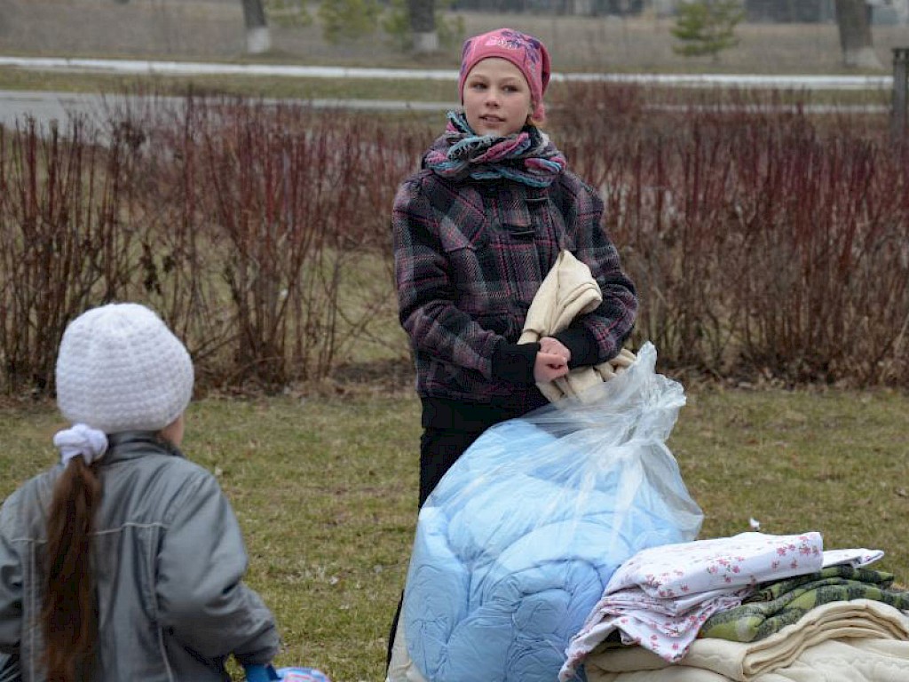 „Tanja, schau mal, da ist eine hübsche Jacke für deinen Großen!“ - „Lena, hier ist eine Schultasche für deine Ira. Die wird doch im Herbst eingeschult!“ - „Antonina, ich hab hier eine ganze Tüte mit warmen Socken!“ Die Freude der Menschen ist kaum zu beschreiben.