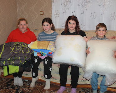 Unsere Mitarbeiter versorgen Binnenflüchtlinge und einkommensschwache Familien mit Lebensmitteln, Hygieneartikeln, Möbeln, Geschirr, Matratzen, Bettwäsche, Kleidung und Schuhen. Die Menschen sind von Herzen dankbar, dass sie in dieser schwierigen Zeit nicht im Stich gelassen werden.