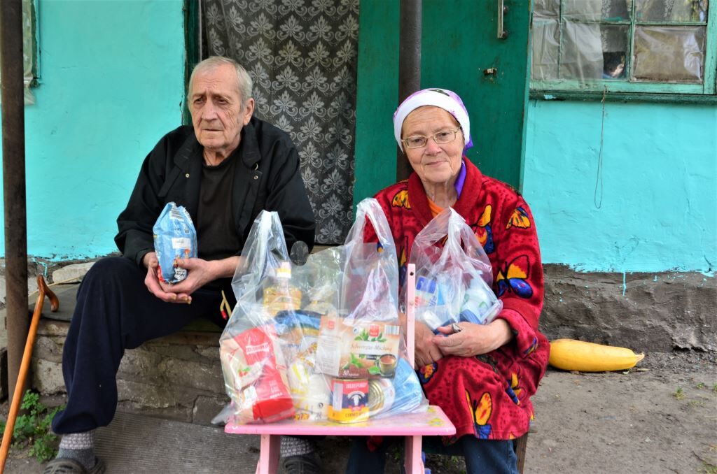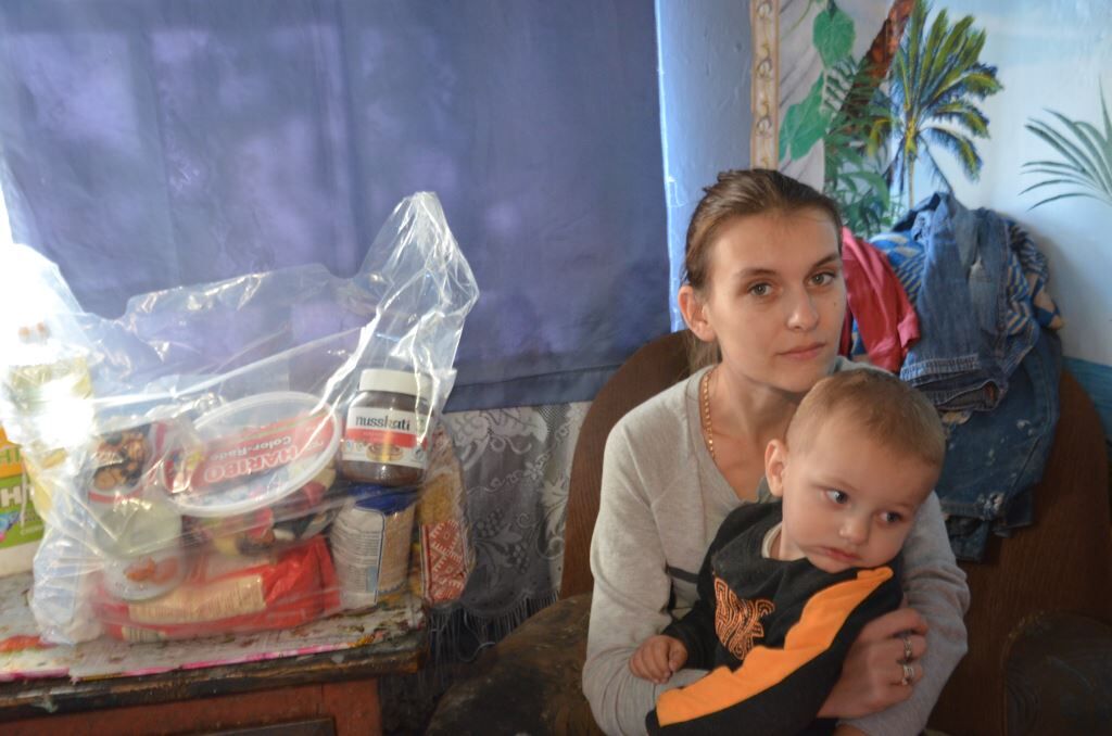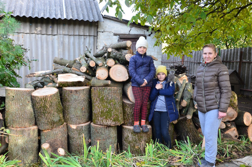 Tanja Galjanskaja bekam ein Paket voller Lebensmittel und Süßigkeiten für ihre Kinder. „Ich werde die Kekse und die Schokolade verstecken. Meine Kinder bekommen jeden Tag nur ein bisschen davon, damit die Süßigkeiten lange reichen.“ Neben Winterkleidung und Schulmaterial haben wir einer anderen Familie Brennholz vorbeigebracht, das nun in der kleinen Scheune lagert. „Unsere Oma hat gesagt, ihr helft uns. Sonst interessiert sich niemand für uns.“ Lera und Vera sind Waisenkinder.