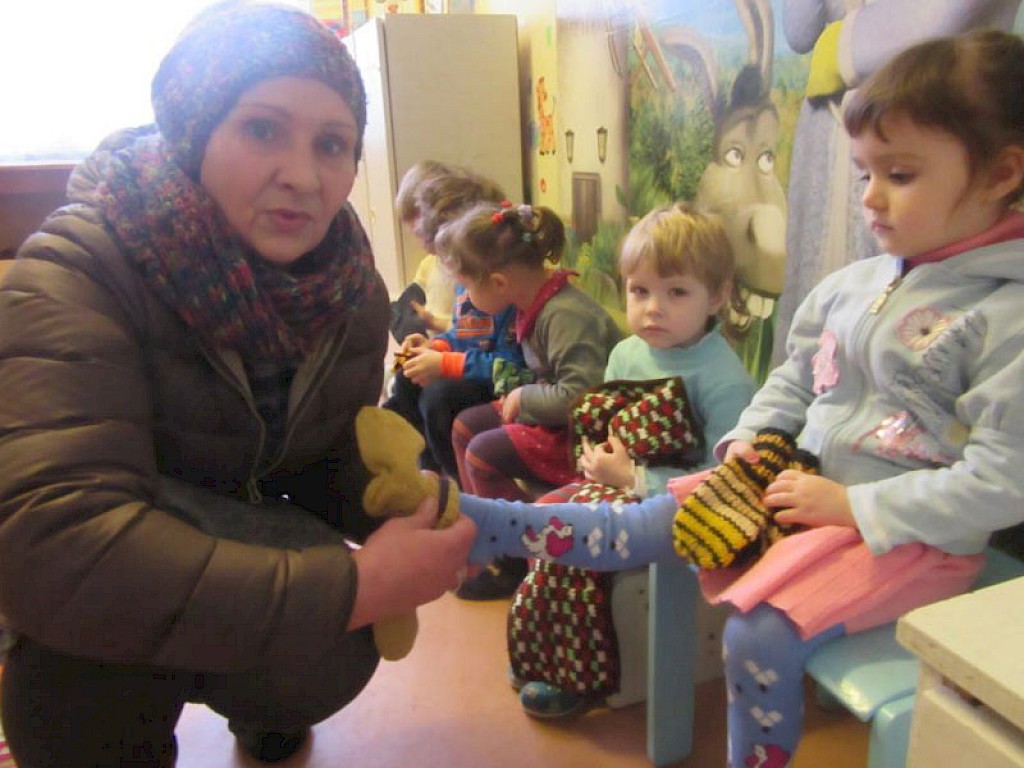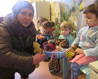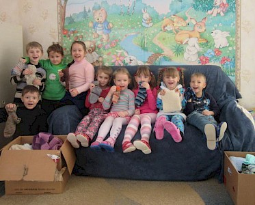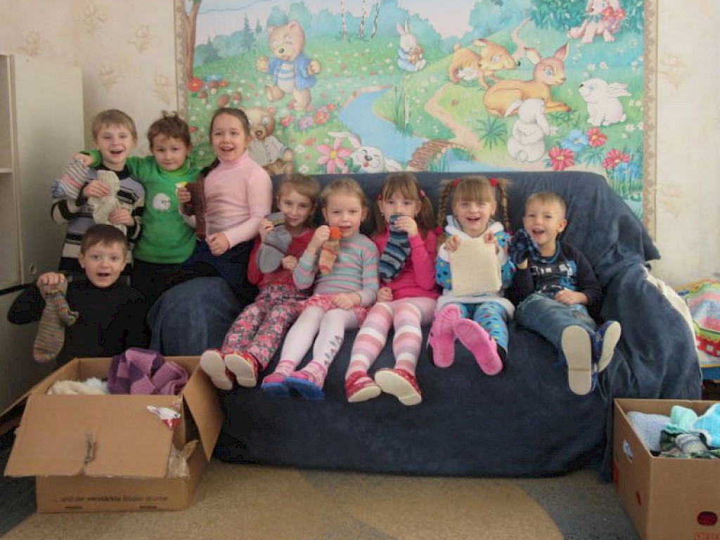 Da kaum noch Geld vorhanden ist, können die Räume in ihrem Kindergarten nur noch auf 15 Grad geheizt werden. Da suchen sie Mützen, Schals und warme Socken. Wir machen uns gleich auf den Weg.