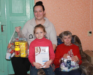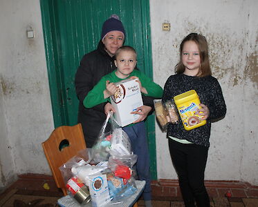 Wir unterstützen die Familien mit Lebensmitteln, Kleidung und Schulmaterial. Die Menschen sind dankbar und erzählen uns von ihren Sorgen. Wir beten zusammen.