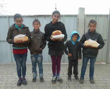Zu Familie Nagolski gehören 14 Personen, die in diesen Tagen durch eine schwere Zeit gehen. Sie haben kein Wasser auf ihrem Grundstück und sind froh, dass sie von uns Wasser erhalten. Da sind die Kinder natürlich begeistert, dass sie wieder jeden Tag in unser Haus kommen können, in dem sie duschen dürfen, in dem sie eine warme Mahlzeit erhalten.