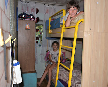 Lera ist 10 Jahre alt, Vera 8 Jahre. Ihre Mutter ist in diesem Sommer gestorben und seit langem haben sie keinen Kontakt mehr zu ihrem Vater. Nach der Beerdigung nahm die Großmutter Natascha die beiden Mädchen zu sich. Sie hat einen Job als Putzfrau angekommen, um Geld für Lera und Vera zu haben. Wenn Natascha abends müde nach Hause kommt, kocht sie das Abendessen, heizt den Holzofen an und hilft den Mädels bei den Hausaufgaben. Die beiden besuchen jeden Tag unseren Zufluchtsort in Boschedariwka, haben bereits Freundinnen gefunden.