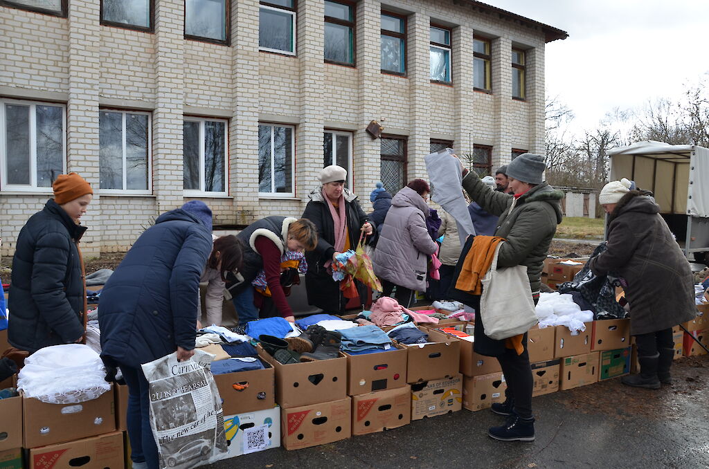 Unsere Mitarbeiter vor Ort versuchen den Menschen zu helfen. Sie organisieren Hilfsaktionen. Dank all der Hilfsgüter aus Deutschland können sie den Menschen ein wenig Hoffnung und Freude weitergeben. Die Flüchtlinge dürfen sich Dinge aussuchen, die sie dringend brauchen. Die alte Großmutter freut sich über eine warme Decke, die Kinder über ein kleines Spielzeug.