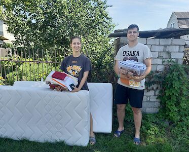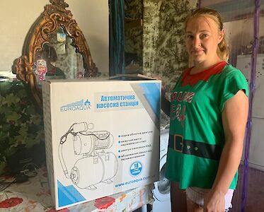Viele Menschen haben Panik, wie sie den Winter überleben sollen, weil sie kaum warme Kleidung und keine Decken besitzen. Sie fragen sich, woher sie Lebensmittel bekommen sollen? „Brücke der Hoffnung“ tut alles, um so gut wie möglich auf den Winter vorbereitet zu sein. Tausende Kilo Lebensmittel und Hygieneartikel kamen bereits aus Deutschland, vor Ort kaufen unsere Mitarbeiter riesige Mengen Kartoffeln. Mit unseren Hilfsgütertransporten konnten wir auch Matratzen in die Ukraine bringen. Zwei davon erhielt eine Flüchtlingsfamilie. Eine andere Familie bekam Stühle und kann nun zusammen an einem Tisch essen. Oxana beschenkten wir mit einer Wasserpumpe. Herzlichen Dank, dass Sie uns zur Seite stehen.