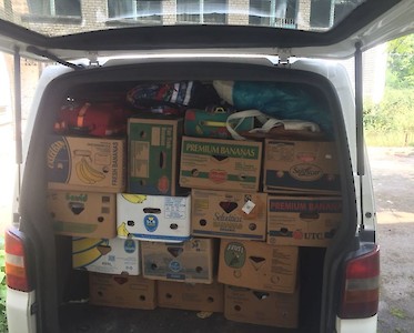 Jedes Jahr schicken wir vier Hilfsgütertransporte auf die lange Reise in die Ukraine. Auf jedem großen Lastwagen sind 97 Kubikmeter, das sind 1.800 Bananenkartons, die in unserer Lagerhalle in Hüttenberg und im Schwarzwald gesammelt wurden.