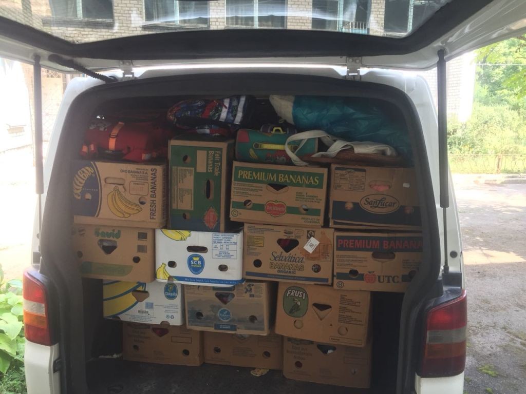 Nun fahren unsere Mitarbeiter oft in Nachbarstädte, um die Hilfsgüter abzuholen. Unsere „Jungen Missionare“ helfen uns dabei. Alles wird in unserer Lagerhalle in Swetlowodsk sortiert und zu bedürftigen Familien gebracht.