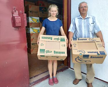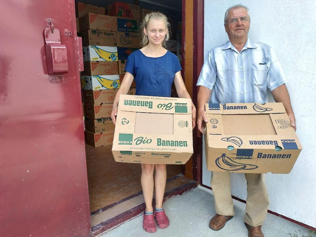 In der vergangenen Woche war es so weit. Peter Degtjar, einer unserer LKW Fahrer, durfte die Lagerhalle öffnen. Nun kann die langersehnte Verteilung der Hilfsgüter endlich beginnen.