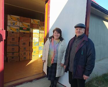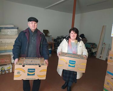 Im September hatten sich Dima Grabenko und Peter Degtjar auf die Reise gemacht, um Hilfsgüter in unserem Missionsbüro in Hüttenberg abzuholen. Sie haben diese Ladung nach Odarjewka gebracht, wo sie in unsere Lagerhalle abgeladen wurde.