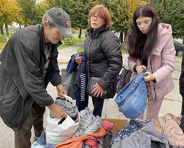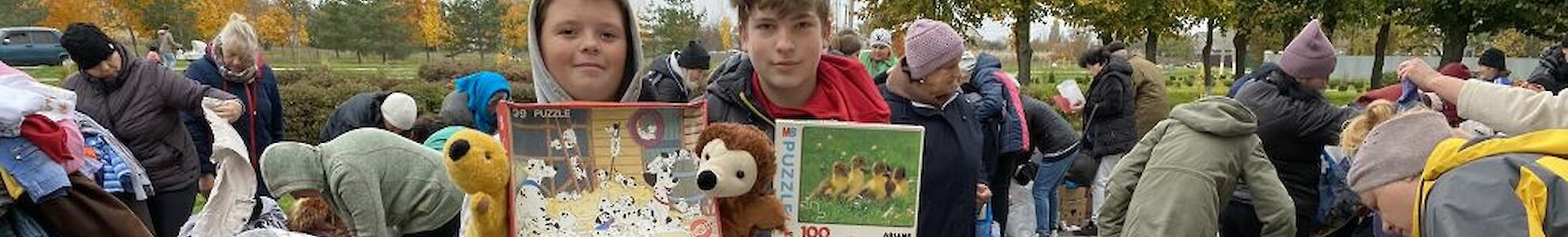 Bei einem Hilfsgütereinsatz in ihrem Dorf durften sich die Bewohner Kleidung, Schuhe und Bettwäsche aussuchen. Die Kinder waren von den Spielsachen begeistert! Auch warme, liebevoll gestrickte Socken, waren begehrt. Ein herzliches Dankeschön an alle, die unsere Hilfsgüterarbeit unterstützen. Auch dieses Jahr wieder konnten wir unzählige Bananenkartons voller Kleidung in die Ukraine transportieren.