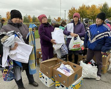„Vielen Dank, wir brauchten wirklich dringend warme Kleidung und Bettwäsche. Jetzt sind wir gut versorgt!“ Antonina kommt aus Sumy. Jetzt wohnt sie in Velyka Andrusivka. Antonina flüchtete zusammen mit ihrer Familie vor dem Krieg. Sie konnten nur das Nötigste an Kleidung mitnehmen.