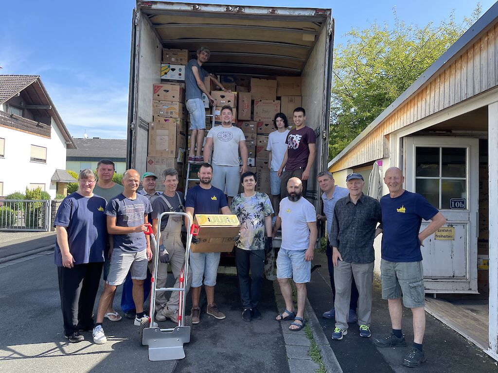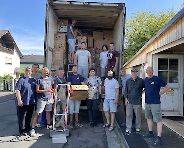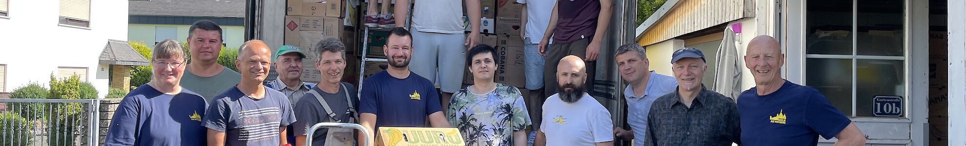 Letzte Woche konnten wir den LKW beladen. Wir hatten insgesamt 16 Helfer, so viele wie noch nie. Ein ukrainischer Flüchtling, der uns bereits mehrmals unterstützte, hatte einige weitere Ukrainer zum Helfen motiviert. Gott sei Lob und Dank!