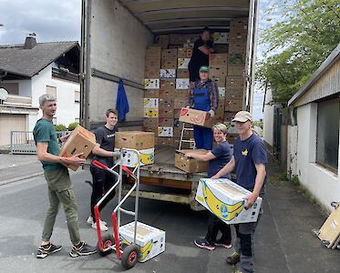 Kartons mit Kleidung, vorwiegend für Kinder und Jugendliche, Schuhen, Bettwäsche, kleinere Möbelstücke, Matratzen, Hoffnungsboxen und Patenpakete sind mittlerweile gut angekommen. Bereits am Freitag wurde der LKW vor Ort abgeladen.