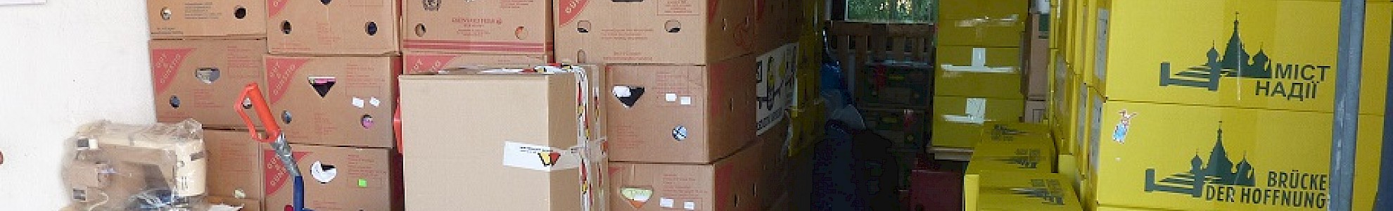 Viermal im Jahr führt „Brücke der Hoffnung“ Hilfsgütertransporte in die Ukraine durch. Unser 34 Tonnen LKW kann jedes Mal 97 Kubikmeter Hilfsgüter, das sind etwa 1.800 Bananenkartons, mitnehmen.