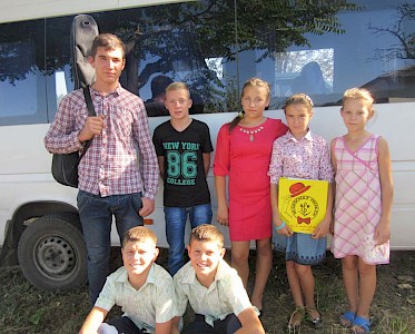 Eifrig lernten sie Lieder, halfen unseren Transporter beladen. Im Dorf bauten sie die Bühne, die Verstärkeranlage auf. Dann begann die für sie unvergessliche Veranstaltung. Nach ihren Liedern und einer kleinen Ansprache durften sie Hilfsgüter verteilen. Die frohen, dankbaren Gesichter zeigten ihnen, wie wichtig es ist, nicht nur zu bekommen, dass es noch schöner ist, wenn man etwas verschenken darf.