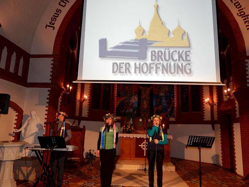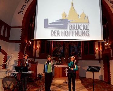 Am Samstag ging es bei strahlendem Sonnenschein aus Schleswig Holstein über Bremen nach Ostfriesland. Unser Ziel war die Evangelische Kirche in Hollen. Auf der Fahrt haben wir über all die schönen Erlebnisse auf der ganzen Tournee und besonders über das wunderbare Wetter nachgedacht. Die Kindergruppe der Gemeinde hat eine Kinderpatenschaft in der Ukraine. Es war für unsere Musiker ein ungewohntes Gefühl, als vor der Veranstaltung die schweren Glocken läuteten.