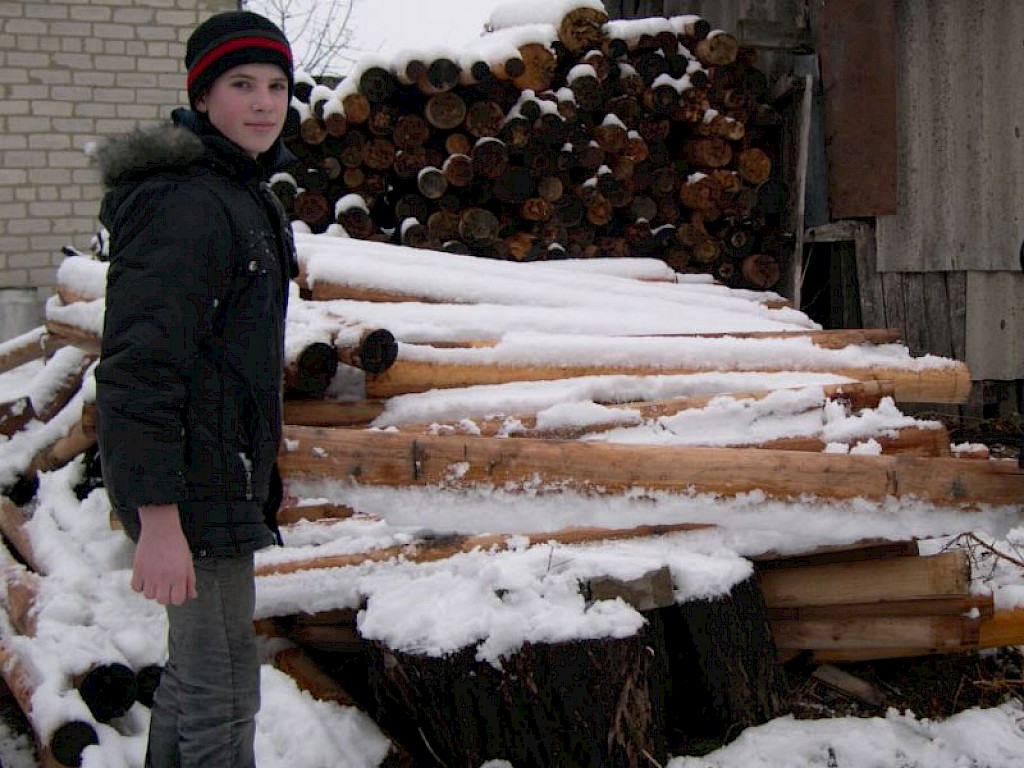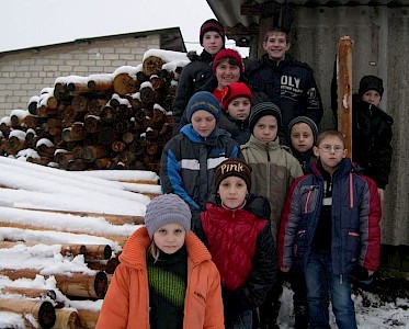 „…Holz…Tante Olga…da steht ein Fahrzeug vor deinem Haus und bringt Holz…“ Ganz aufgeregt laufen die Jungen und Mädchen durch unseren „Zufluchtsort“ in Grigorowka. Sie wissen wie wichtig und wie teuer Holz im Winter ist. Die meisten von ihnen fristen ein trostloses Leben in eiskalten Hütten.