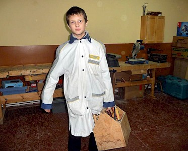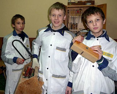 Heute stehen sie nun in unserer „Lehrwerkstatt“, eine Säge in ihrer Hand und probieren aus, wie scharf sie ist. Und einige von ihnen träumen davon, in unsere „Lehrwerkstatt“ aufgenommen zu werden, um eines Tages in einer Baubrigade eine Arbeitsstelle zu finden.