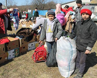 Jeden Tag hören unsere Mitarbeiter schreckliche Geschichten, die die Flüchtlinge erzählen, die vor den Bomben und Explosionen fliehen. Familien, die sich in Kellerräumen verstecken, entdecken, wenn sie nach einem Luftangriff wieder auf die Straße gehen, dass von ihrer Wohnung nichts mehr übriggeblieben ist. Das tut weh und ist beängstigend. Unsere Mitarbeiter sind regelmäßig in der Region um Switlowodsk unterwegs, um Flüchtlinge mit Kleidung und Schuhen zu versorgen. Auch Bettwäsche brauchen diese Menschen dringend. Wir sind sehr froh, dass wir mit unserem Hilfsgütertransport all diese Dinge in die Ukraine bringen konnten. Danke für Ihre Unterstützung!
