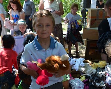 Wie gut, dass wir in Deutschland viele gut erhaltene Hilfsgüter bekommen und in die Ukraine transportieren können. Dankeschön!