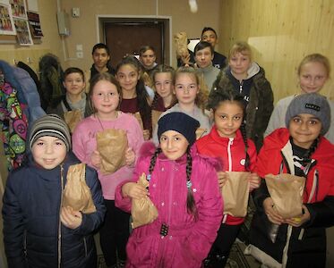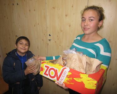 Und bevor sie nach Hause gehen, geben wir ihnen eine Brotbox mit auf den Weg für ihr Abendessen.