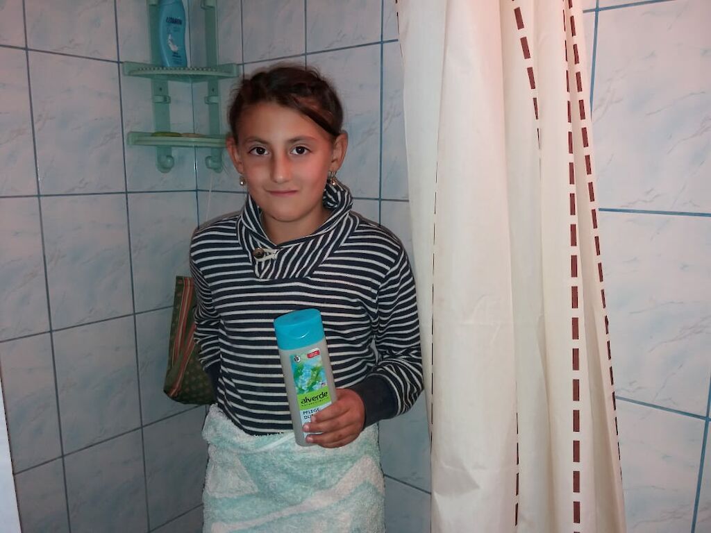 Eine wichtige Aufgabe in unserer Arbeit ist die Hygiene unserer Gäste. Die meisten der Mädchen und Jungen, die unsere Kinderhäuser besuchen, haben kein fließendes Wasser zu Hause. Das heißt fast alle haben bei uns zum ersten Mal unter einer Dusche gestanden.