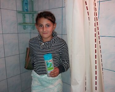 Viele Kinder aus armen Familien werden in der Schule verspottet, weil sie nicht gut riechen. Wir sind froh, dass wir in jedem Haus eine Dusche haben.