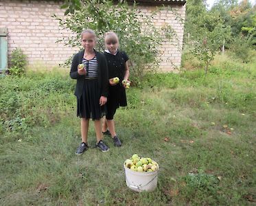 Unsere jungen Helfer sind in „Vergessenen Dörfern“ unterwegs. Pflücken in Gärten von älteren Menschen Äpfel und Pflaumen, helfen ihnen ihr Obst zu verarbeiten.