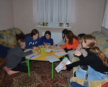Unser Glaubenskurs in Boschedariwka, der fast zeitgleich mit dem Krieg begann, geht langsam zu Ende. Die Mädchen lernten Gott und die Bibel näher kennen, sie machten erste Schritte im Glauben. Wir versuchten eine gemütliche Atmosphäre zu schaffen, es gab Kuchen und Tee. Manchmal saßen wir bei Stromausfall zusammen auf dem Sofa, in eine dicke Decke gewickelt, und lasen eine Geschichte in der Bibel. Gegenseitig versuchten wir uns zu ermutigen. Der Vater einiger Mädchen ist an der Front, andere Eltern kümmern sich kaum um ihre Kinder.