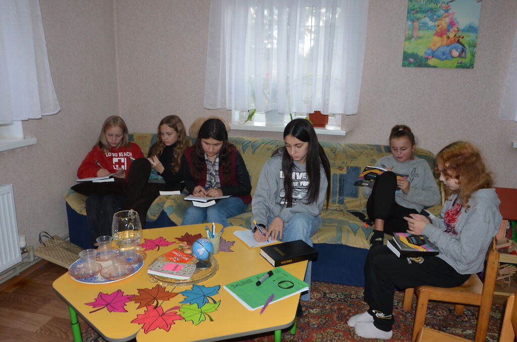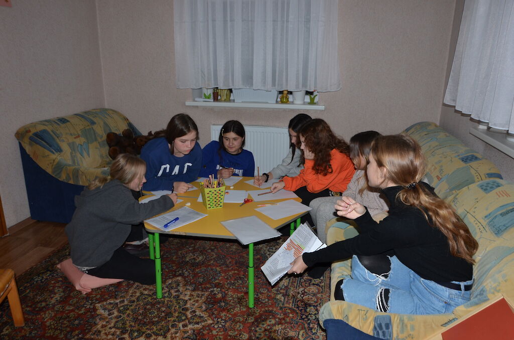 Unser Glaubenskurs in Boschedariwka, der fast zeitgleich mit dem Krieg begann, geht langsam zu Ende. Die Mädchen lernten Gott und die Bibel näher kennen, sie machten erste Schritte im Glauben. Wir versuchten eine gemütliche Atmosphäre zu schaffen, es gab Kuchen und Tee. Manchmal saßen wir bei Stromausfall zusammen auf dem Sofa, in eine dicke Decke gewickelt, und lasen eine Geschichte in der Bibel. Gegenseitig versuchten wir uns zu ermutigen. Der Vater einiger Mädchen ist an der Front, andere Eltern kümmern sich kaum um ihre Kinder.