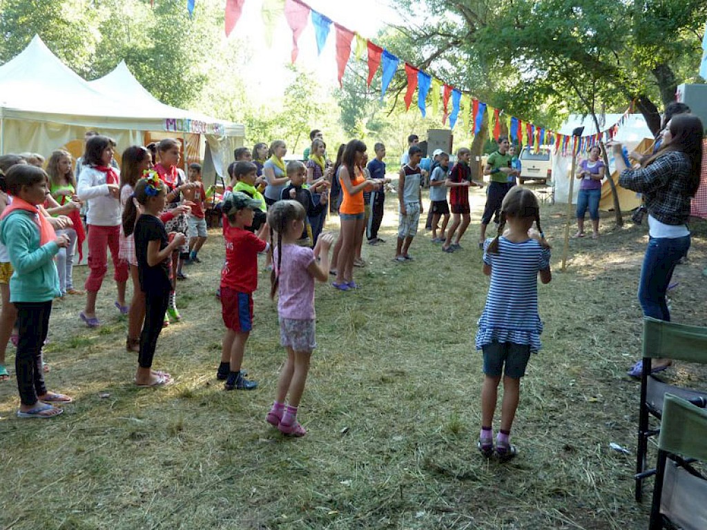 Laut schallt Musik über unseren Lagerplatz. Aufstehen, es ist Zeit zum Frühsport. „Junge Missionare“ haben diesen Programmteil übernommen. Die meisten Kinder toben heute im Wasser herum. Einige, aus „Vergessenen Dörfern“, haben noch nie in einem See oder Fluss gebadet. Sie können ihr Glück kaum fassen.