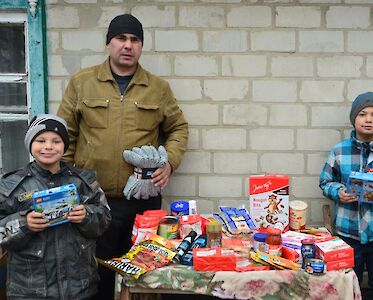 „Vielen Dank für die neuen Autos und die leckeren Süßigkeiten!“ Stas freut sich riesig. Sein Bruder und er haben vor ein paar Jahren die Mutter durch eine Krebserkrankung verloren und wachsen nun beim Vater auf.