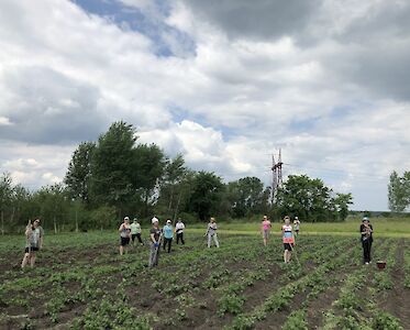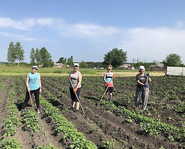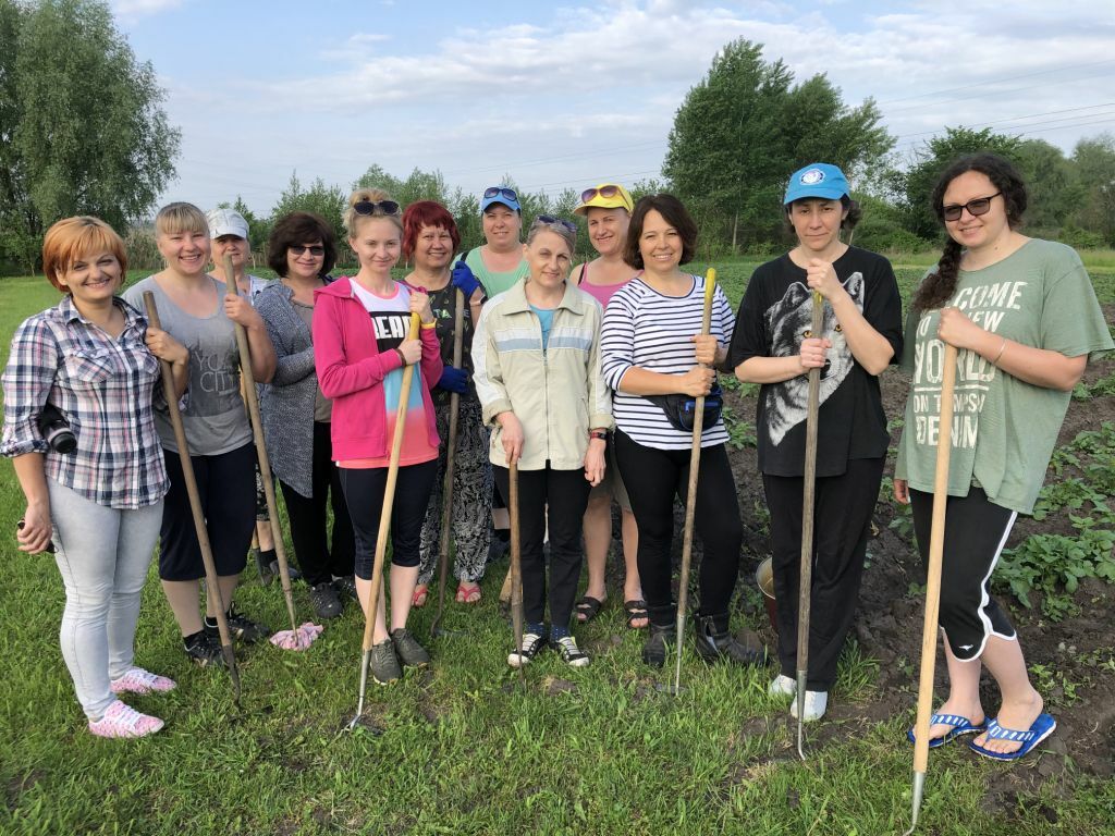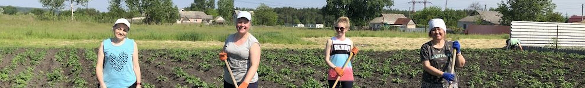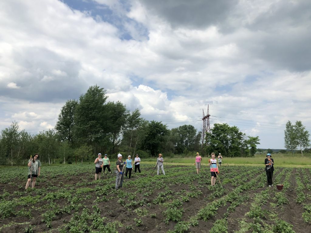 Im April haben sie auf dem riesigen Acker hinter dem Haus einer Mitarbeiterin Kartoffeln gepflanzt. Nun muss das Unkraut beseitigt werden. Das ist eine anstrengende Arbeit, aber es ist auch ein Tag, an dem sie Gemeinschaft pflegen können.