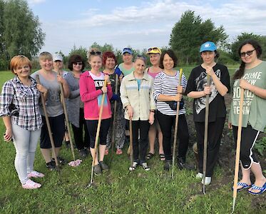Früh am Morgen machen sich unsere Mitarbeiter auf den Weg nach Willne, in ein kleines Dorf, etwas außerhalb von Swetlowodsk. Heute soll es heiß werden. Da wollen sie natürlich vor der Mittagshitze fertig werden.