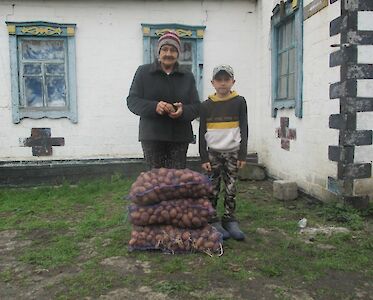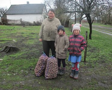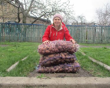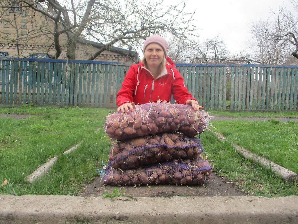 Unsere Mitarbeiterinnen haben Setzkartoffeln an bedürftige Familien verteilt. Die Frauen haben ihre Gärten für den Kartoffelanbau vorbereitet und Kartoffeln gepflanzt. Immer wieder mussten sie ihre Arbeit unterbrechen, um bei Luftalarm sichere Räume aufzusuchen. Jede Frau hofft, dass im Herbst, zum Zeitpunkt der Ernte, die Ehemänner, Väter und Söhne gesund nach Hause zurückkehren werden. Sie möchte ihnen ein leckeres Essen als Willkommensgeschenk zubereiten.