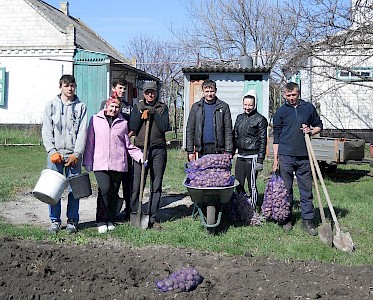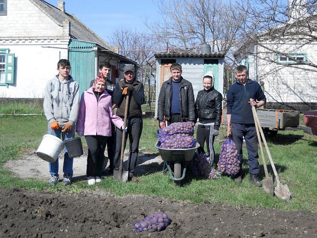 Luda Slobodianik, die unsere Hilfsaktionen in den „Vergessenen Dörfern“ leitet, arbeitet momentan intensiv an unserer Kartoffelaktion. Viele Flüchtlinge würden gerne mitmachen, doch sie haben im Kriegsgebiet in Hochhäusern gewohnt, haben noch nie in einem Garten gearbeitet. Da müssen erst einmal Seminare gehalten werden.