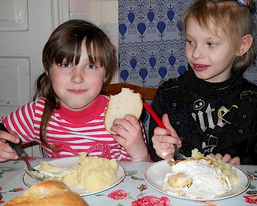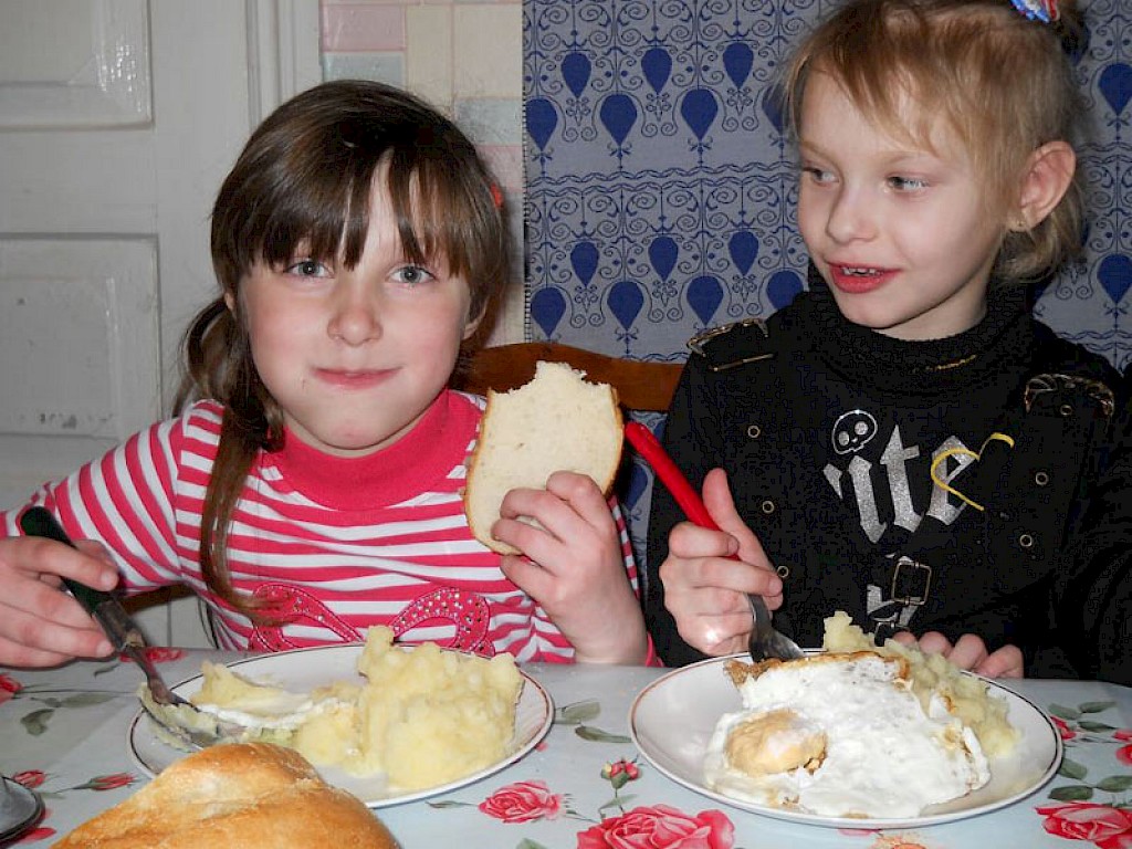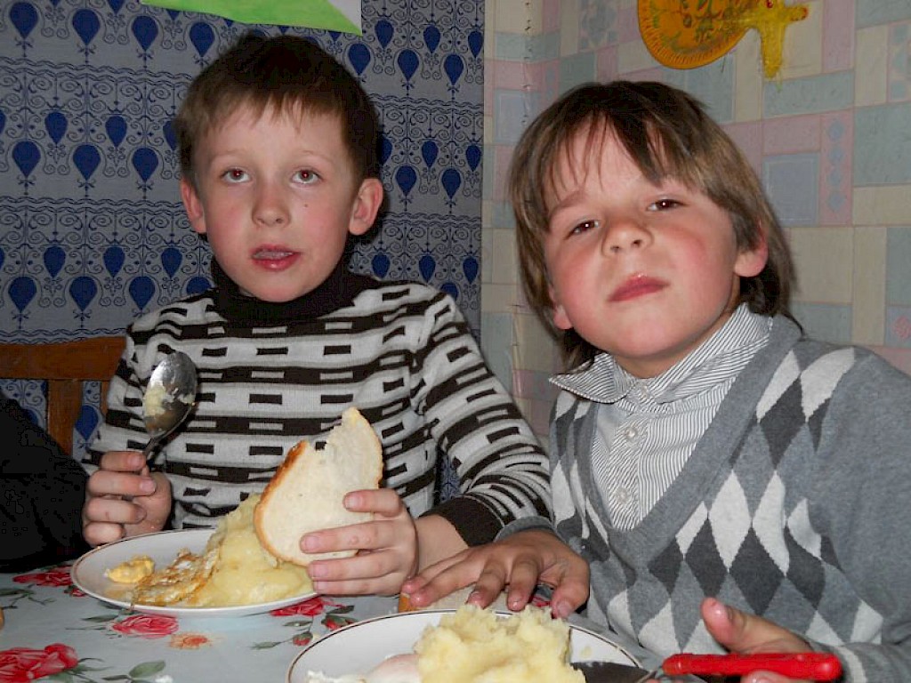 „Tante Lena, habt ihr noch genug Kartoffeln in eurem Vorratsraum? Wir haben zu Hause schon lange keine Kartoffeln mehr.“ Ein wenig beunruhigt schaut Jarik Lena Uchnal an, die unsere „Villa Sonnenschein“ leitet. Die meisten Familien haben schon seit Wochen ihre Kartoffelvorräte aufgebraucht. Manchmal zeigen wir den Kindern unser Kartoffellager, um sie zu beruhigen.