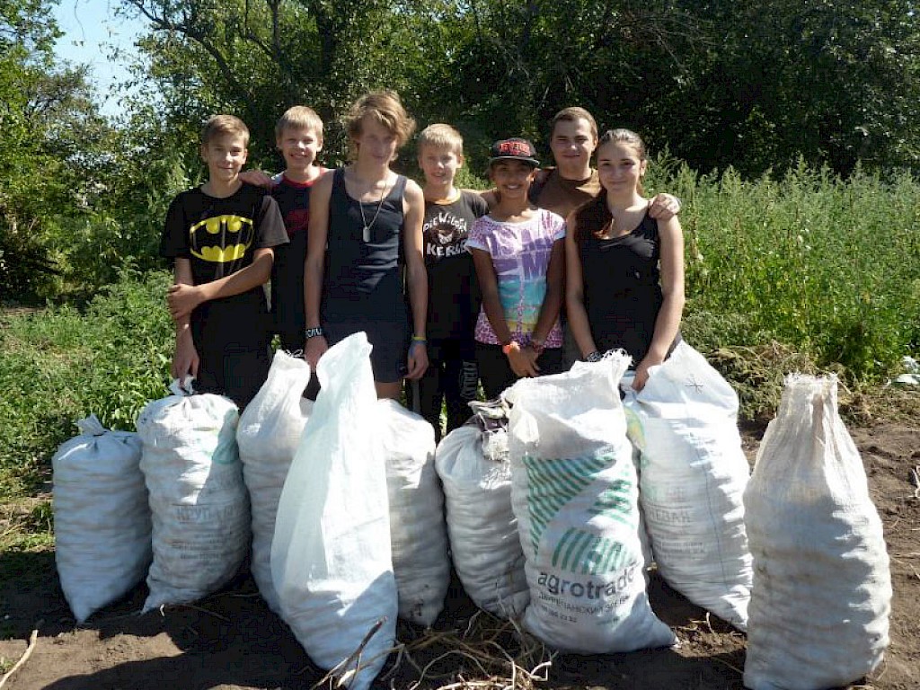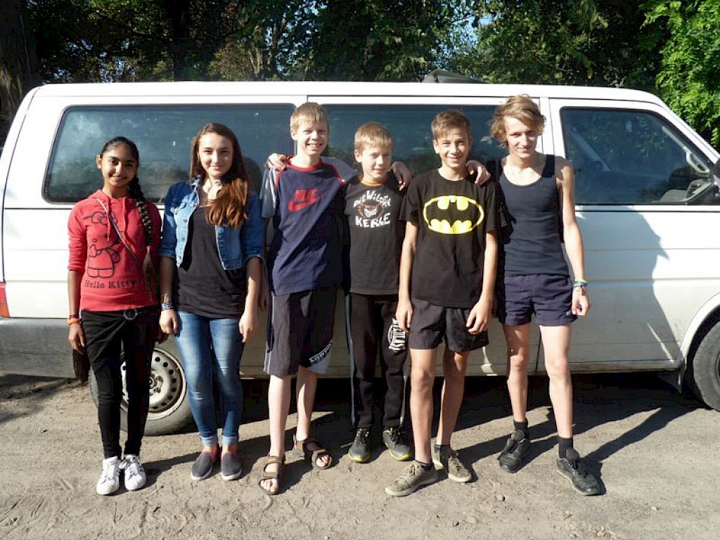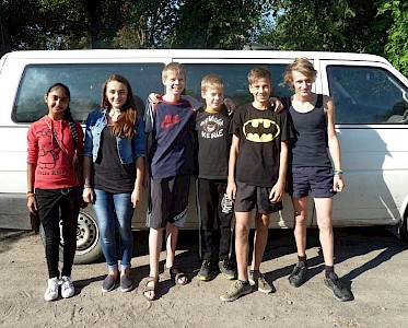 Ein wenig verschlafen steigen einige unserer „Jungen Missionare“ in unseren Bus. Am Samstag können die anderen Jugendlichen ausschlafen, doch wir fahren zur Kartoffelernte nach Pawlowka.