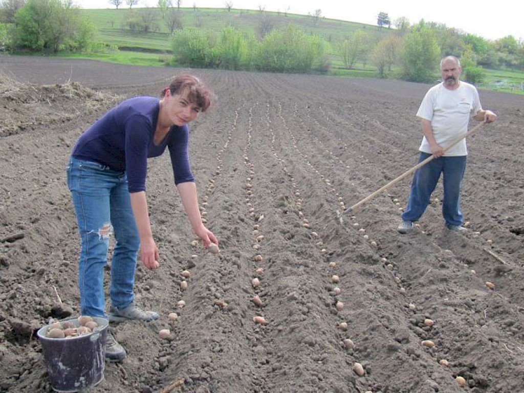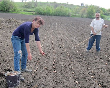 Auch in unserem „Zufluchtsort“ ist Pflanzzeit angesagt. Ein Nachbar hat uns Dünger von seinen Tieren verkauft. Andere wollen sich ein wenig Geld verdienen, verteilen den Dünger auf unserem großen Acker. Ein anderer Nachbar pflügt alles mit seinem Traktor unter.