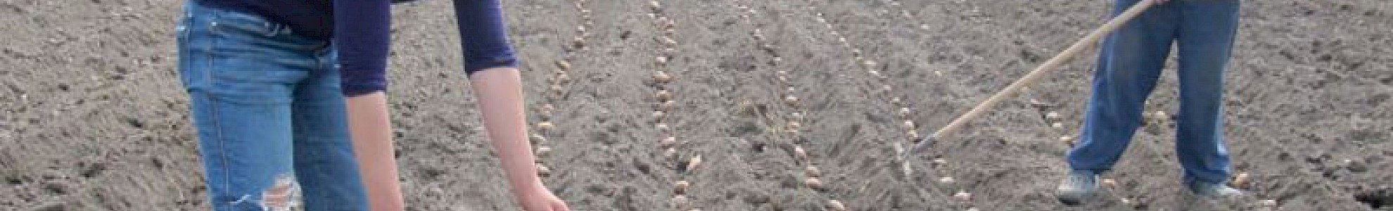 Dann ist der große Augenblick da. Ein Mitarbeiter macht mit seinem Handtraktor Furchen auf den Acker, in die wir zusammen Kartoffeln legen, um sie mit Erde zu entdecken. Nun laufen unsere kleinen Freunde jeden Tag aufs Feld und warten auf die ersten grünen Spitzen.