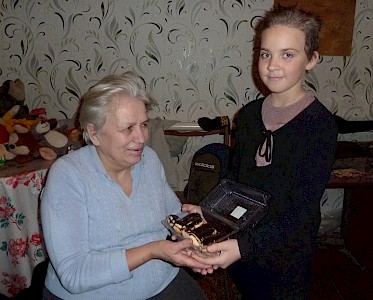 „Und ich werde meine Kekse der Großmutter schenken, die neben uns wohnt. Die ist fast den ganzen Winter krank gewesen.“