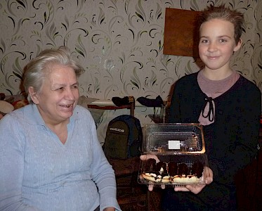 „Ich nehme meine Kekse für meine Oma mit. Nachdem mein Vater gestorben ist, der ja ihr Sohn ist, habe ich sie kaum noch lachen gesehen. Sie wird sich über meine Kekse freuen.“ Sorgfältig packt Lessja ihre Kekse in eine Serviette.